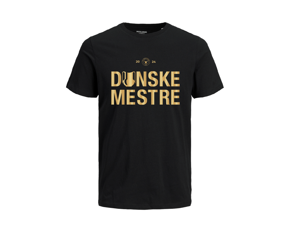 FC Midtjylland Jack & Jones mesterskabs t-shirt 2024. Trøjen har et helt unikt design, som er lavet specifikt til fejringen af det fjerde danske mesterskab hvor guldet endnu en gang blev hevet hjem til Heden. Køb den allerede nu, og vær med til en brag af en fejringsfest!