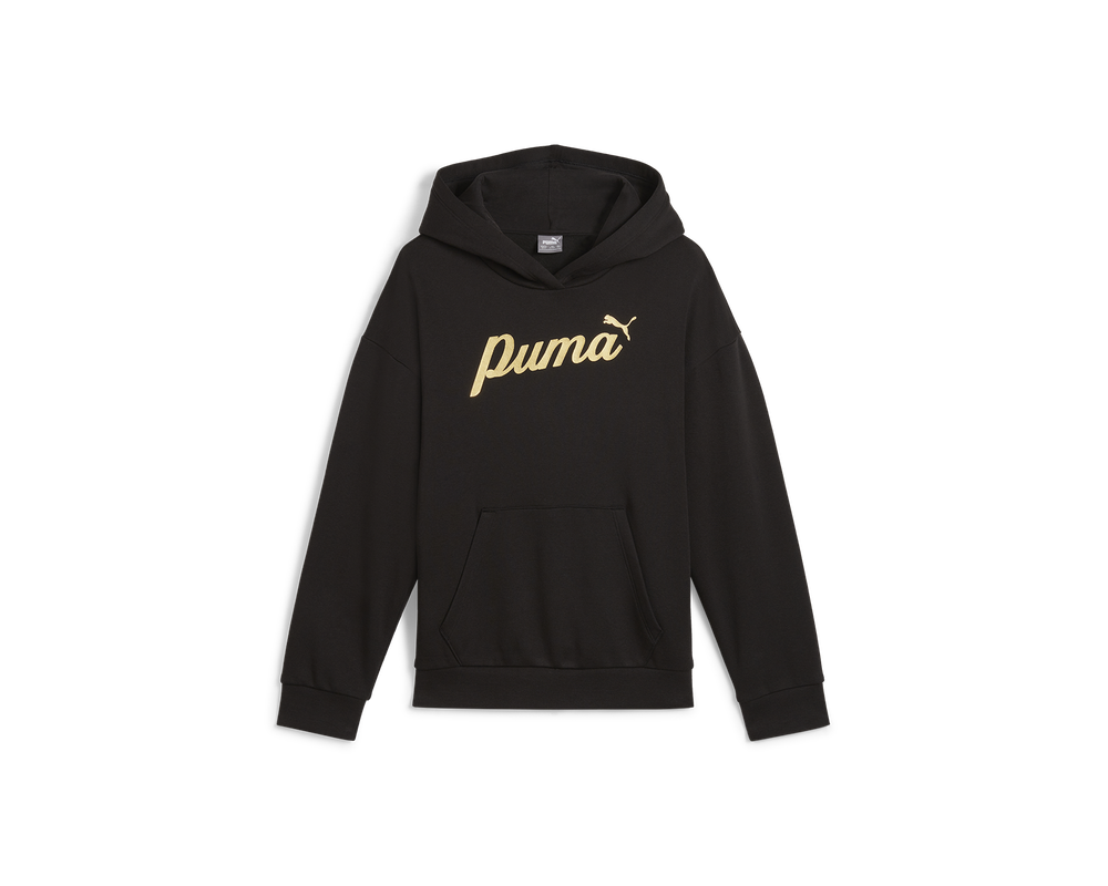 Ulveshoppen / CASUAL WEAR / SPORT FASHION / PUMA CASUAL / PUMA ESS+ SCRIPT METALLIC SWEAT SORT/GULD BØRN