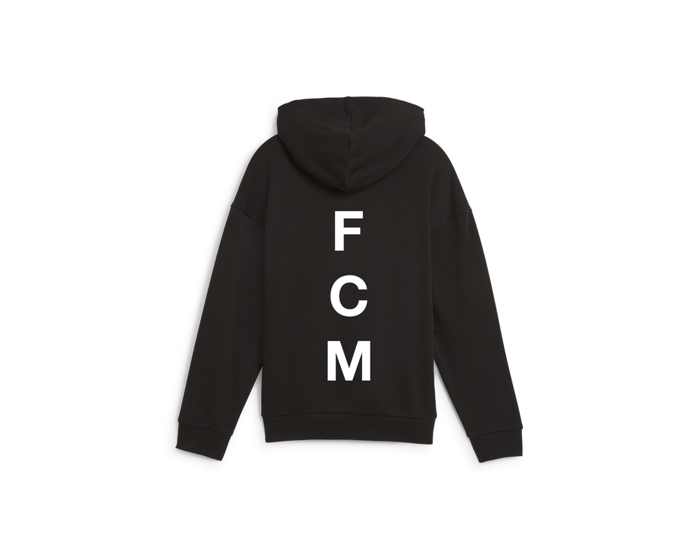 Denne PUMA Sweatshirt i sort med guldtryk og "F C M" er skrevet på ryggen af trøjen kombinerer komfort og elegance, perfekt til et stilfuldt hverdagslook. Den har et regular fit og er lavet af en blød blanding af 66% bomuld og 34% genanvendt polyester, som sikrer komfort hele dagen. Det metallic guldtryk tilføjer et iøjnefaldende touch, mens det røde stof giver en varm og moderne stil.