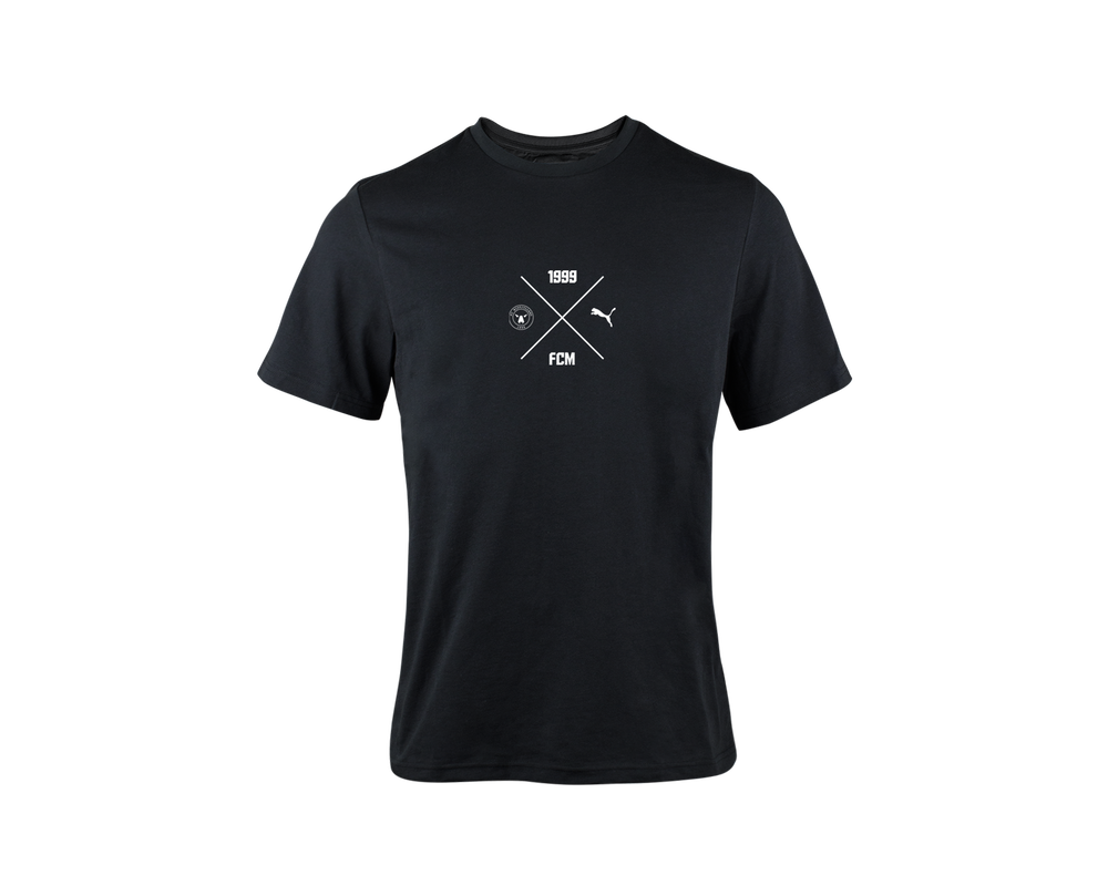 Denne t-shirt er lavet af en behagelig og blød bomuldsblanding med komforten i højsædet. T-shirten er lavet af en klassisk sort t-shirt med en rund hals og det enkle og stilrene design gør du kan bruge denne t-shirt til enhver lejlighed. Denne specifikke variant kommer med et unikt design med FCM og Puma logo, samt FCM og 1999.