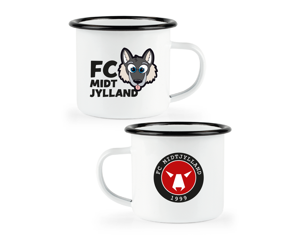 Det hvide emaljekrus er designet med det klassiske FCM logo på den ene side, og vores maskot Lupus, på den anden side. Kruset har en fin sort kant.