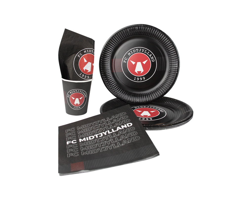 PAKKETILBUD! Denne fødselsdagspakke indeholder vores FCM Servietter, FCM Engangskopper og FCM Paptallerkener.