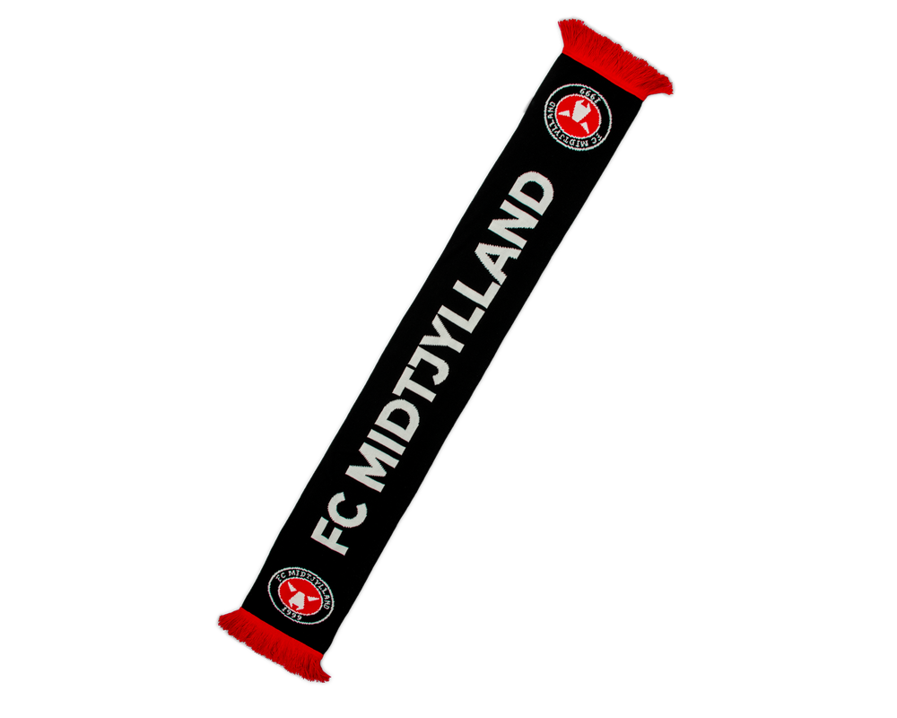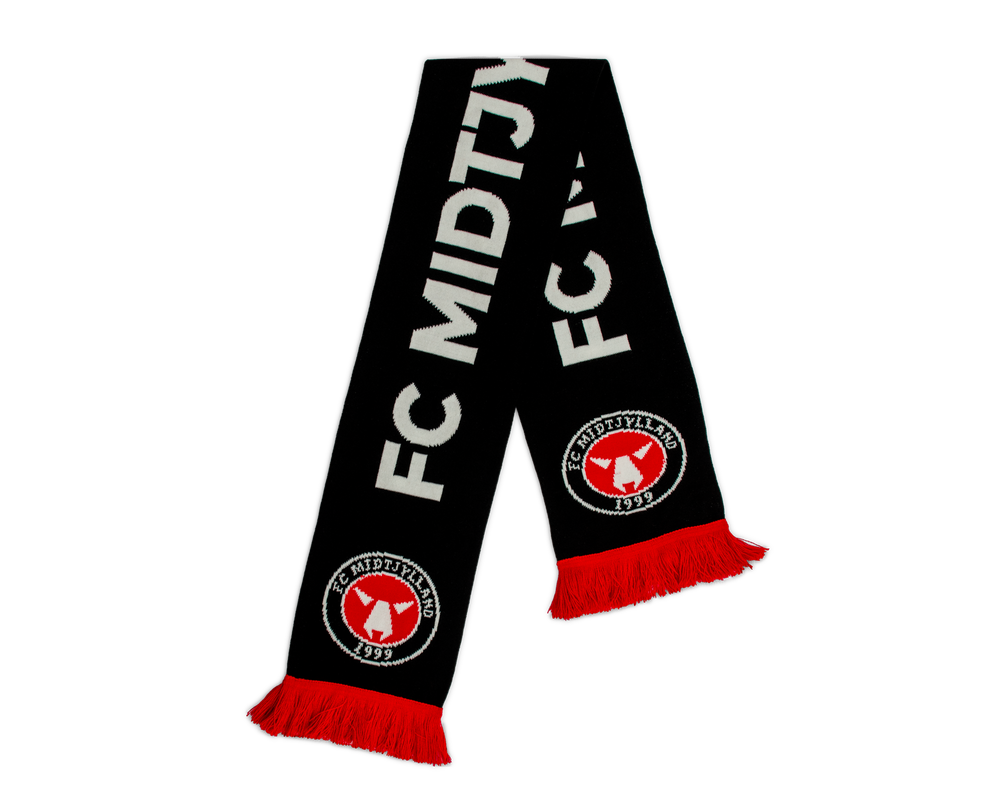 Det klassiske FCM halstørklæde med logo og teksten FC Midtjylland.