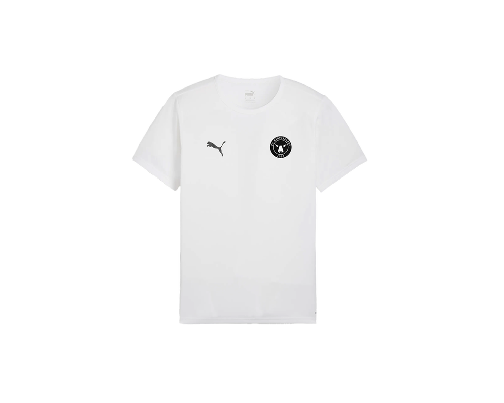 Tag din støtte til FC Midtjylland med dig i denne stilrene FCM Hvid T-shirt med sort logo. T-shirten er fremstillet i blødt og åndbart materiale, som gør den behagelig til både hverdag og kampdag. Med det enkle sorte logo på brystet har du et klassisk look, der passer til enhver lejlighed, og som viser din tilknytning til klubben på en elegant måde.