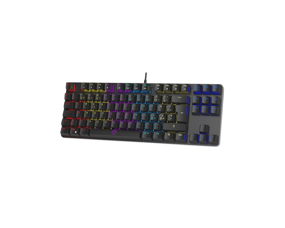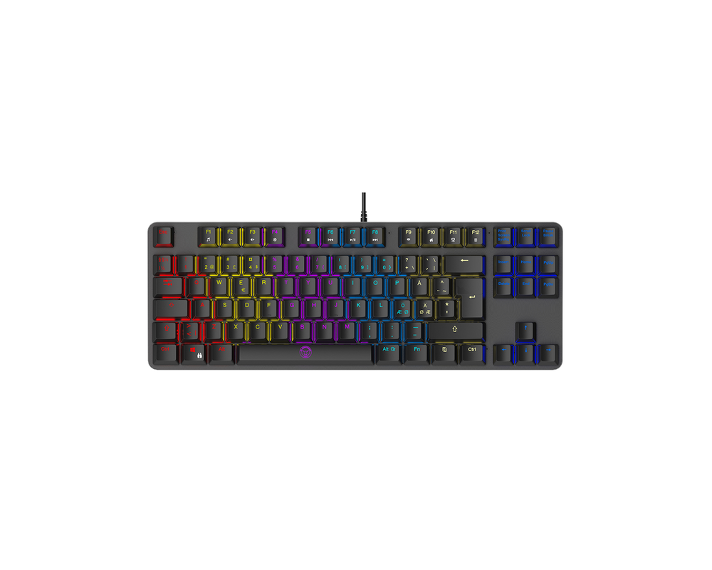 Dette tastatur har et nordisk design med mekaniske media taster med anti ghost mode, samt er designet med RGB belysning, der tilbyder dig 16,8 millioner farver. Tilsluttes via USB, samt har en aftagelig håndledsstøtte.