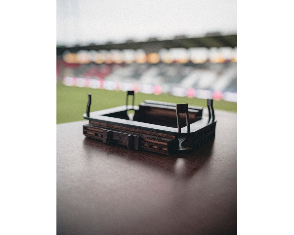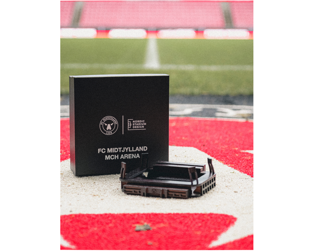 I anledning af klubbens 25 års jubilæum er det os en glæde at præsentere denne eksklusive træmodel af vores ikoniske stadion, som er udviklet i samarbejde med FC Midtjylland og Nordic Stadium Design. Denne model fanger essensen af MCH ARENA med fokus på de små detaljer og kvalitet. Tag magien af MCH ARENA med hjem og gør det en del af indretningen.