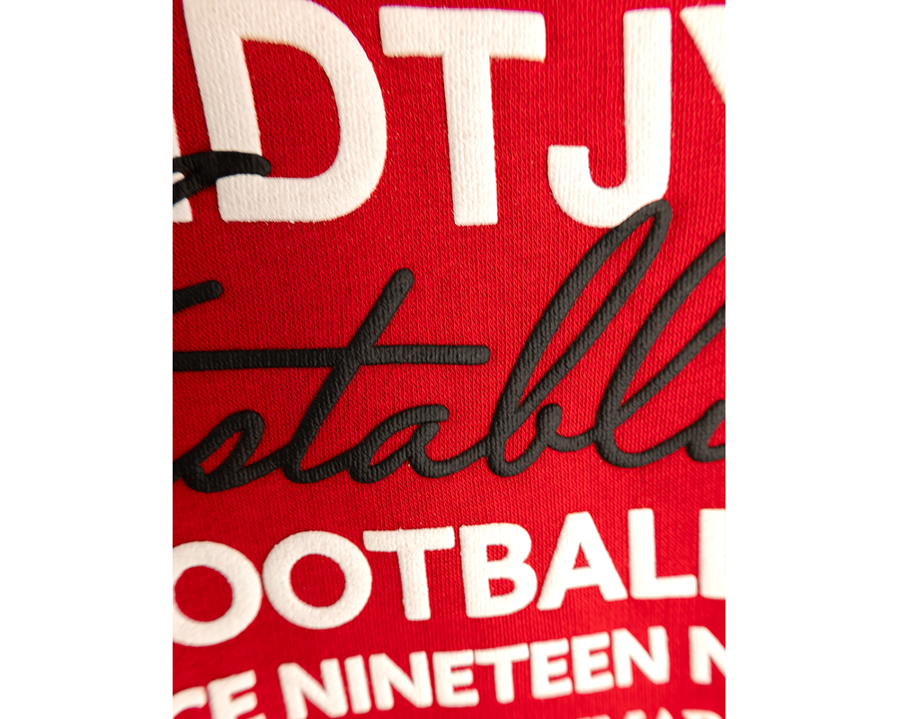 En god hættetrøje skal være behagelig, praktisk og stilfuld – og denne hoodie i rød leverer på alle tre parametre. Med sin loose fit pasform sidder den afslappet og behageligt, perfekt til både hverdagsbrug og stadionture. Materialet er af 70% bomuld og 30% polyester sikrer blødhed, åndbarhed og holdbarhed.