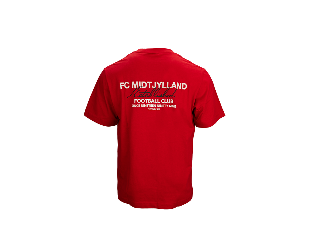 FCM NINETY NINE TEE i rød er en stilren og komfortabel T-shirt, perfekt til både hverdag og kampdag. Den er lavet af 100% blødt bomuld og har en relaxed fit, der sikrer en afslappet og behagelig pasform.