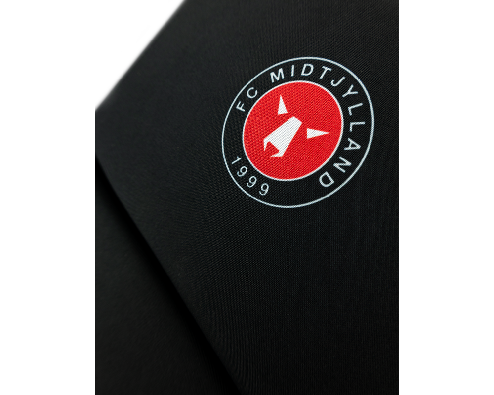 Sort FC Midtjylland siddepude med logo.