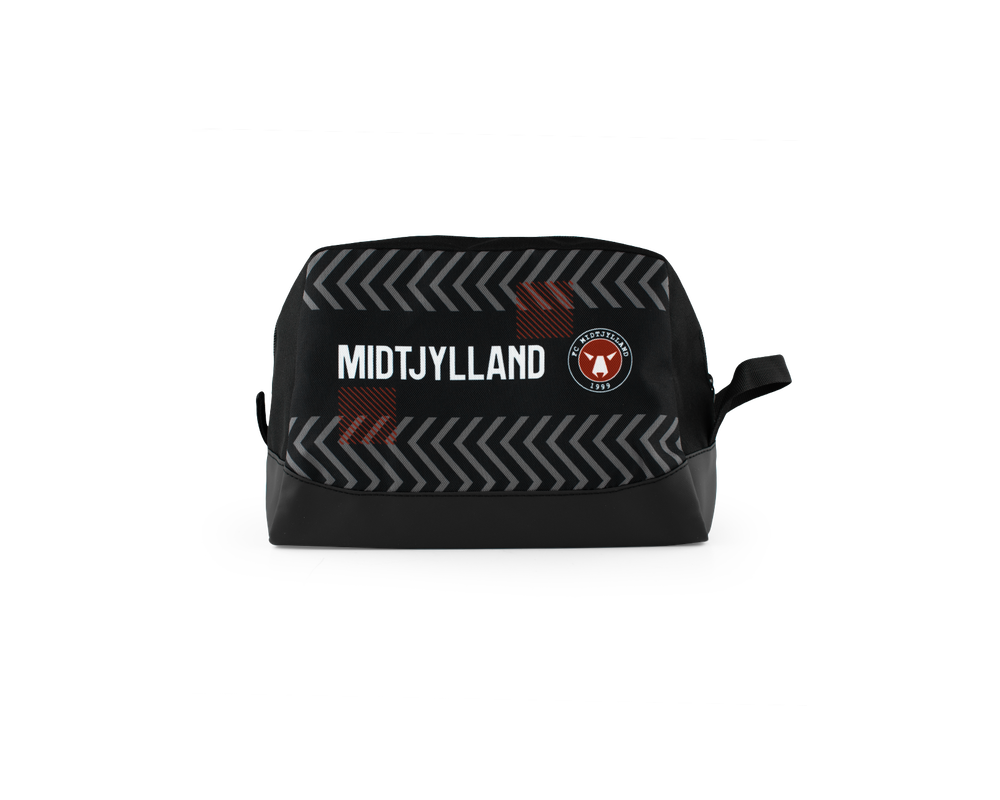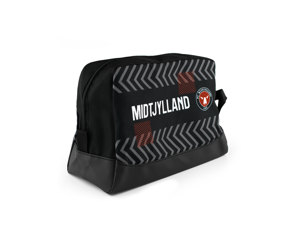 FCM toilettasken er et must have i FCM-fanens hjem. Den er velegnet til at have stående derhjemme på badeværelset eller medbringe på tur. Tasken er udstyret med et stort rum med lynlås, hvori der er plads til alle dine toiletsager.