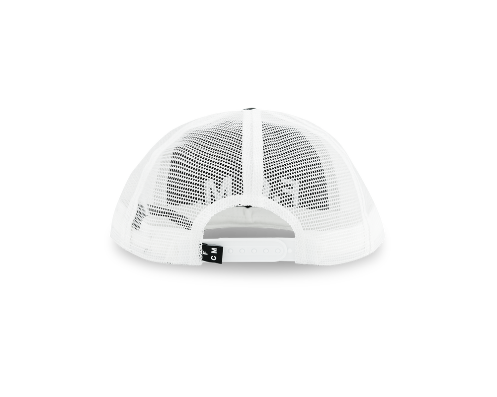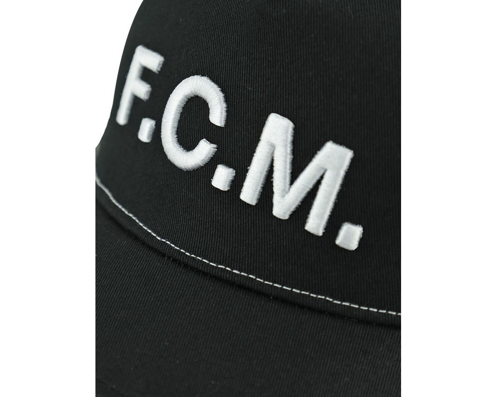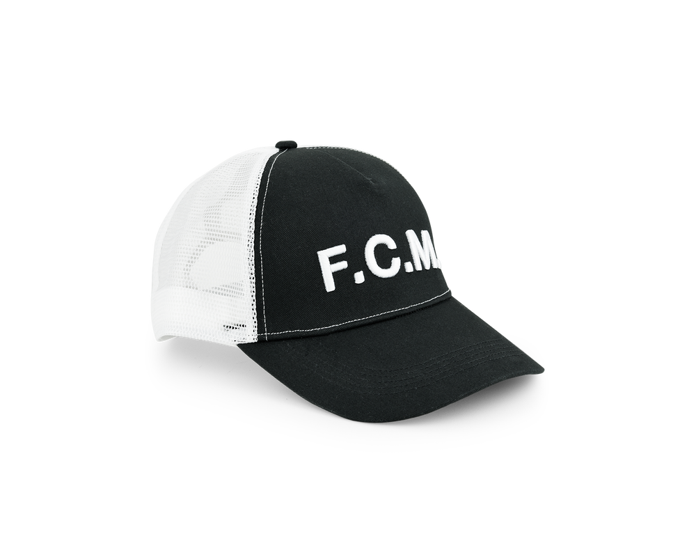 Denne stilfulde FCM Trucker Cap kombinerer komfort og design. Kasketten er I sort med "F.C.M." skrevet med hvid på fronten.
