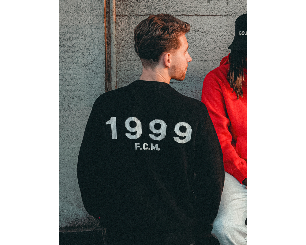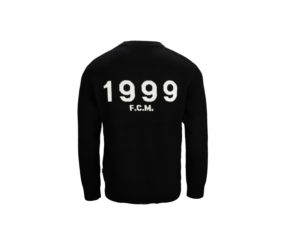 Opgrader din garderobe med denne FCM striktrøje i sort – en tidløs og stilren striktrøje til den dedikerede FCM-fan. "1999" står tydeligt i hvid skrift på ryggen, som fremhæver en af klubbens vigtigste begivenheder. Denne elegante sweater kombinerer komfort og varme, perfekt til både kølige kampdage og hverdagsbrug.