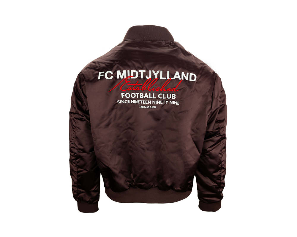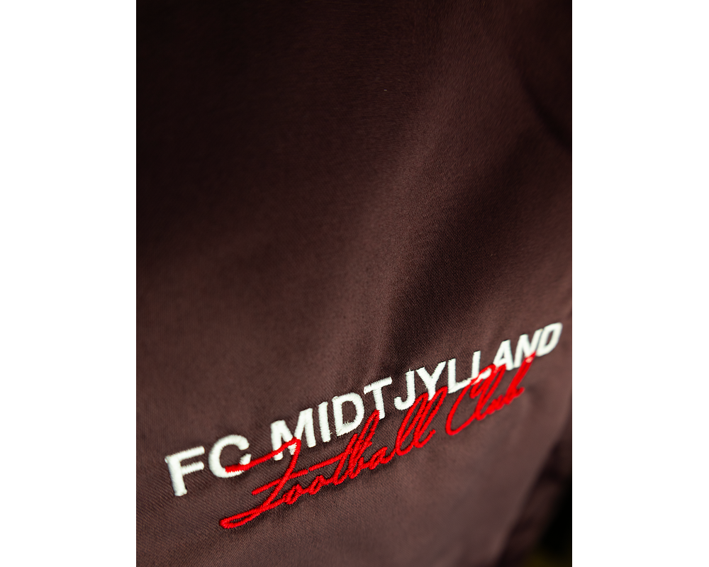 Det stilfulde fudge-farvede design gør jakken ideel til både kampdage og hverdagsbrug, hvor du kan vise din støtte til FC Midtjylland med et klassisk og moderne udtryk med de karakteristiske FCM-detaljer. Fremstillet af 100 % polyester for maksimal komfort og holdbarhed.