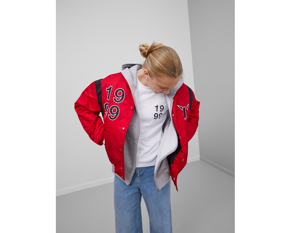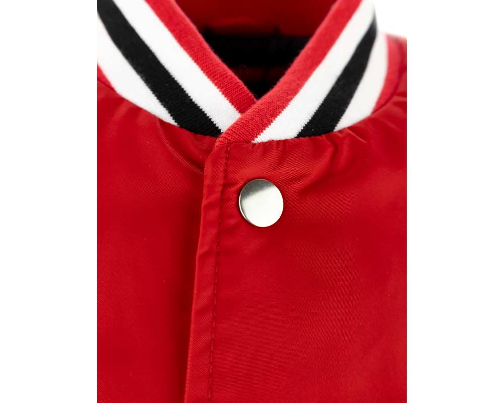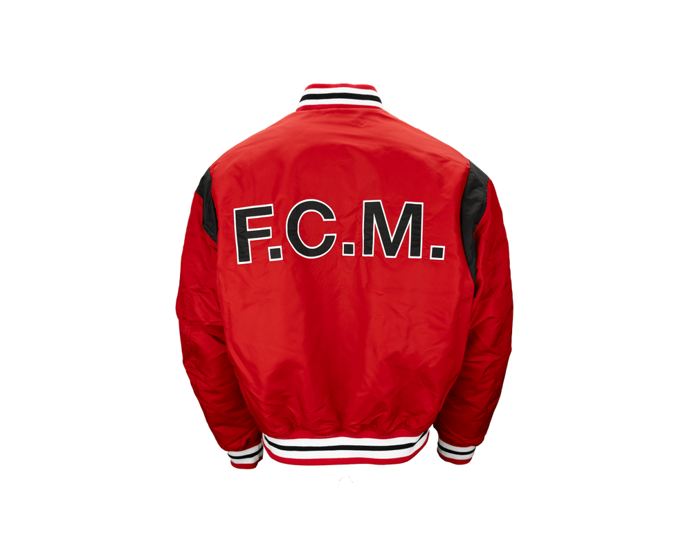 Rød FCM Satin bomberjakke med et moderne twist, der kombinerer stil og klubstolthed. Med '1999' trykt på det ene bryst, FCM's ikoniske ulvelogo på det andet, og et markant FCM-tryk på ryggen, er denne jakke en hyldest til FC Midtjyllands historie. Det elegante røde design gør jakken perfekt til både kampdage og hverdagsbrug, hvor du ønsker at vise din støtte til klubben med et klassisk og tidløst udtryk. Hovedmateriale 100% nylon. Foring 100% polyester.