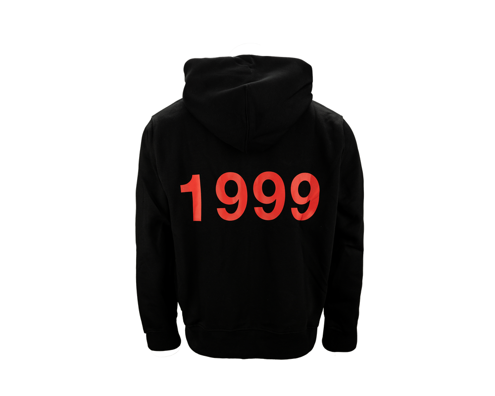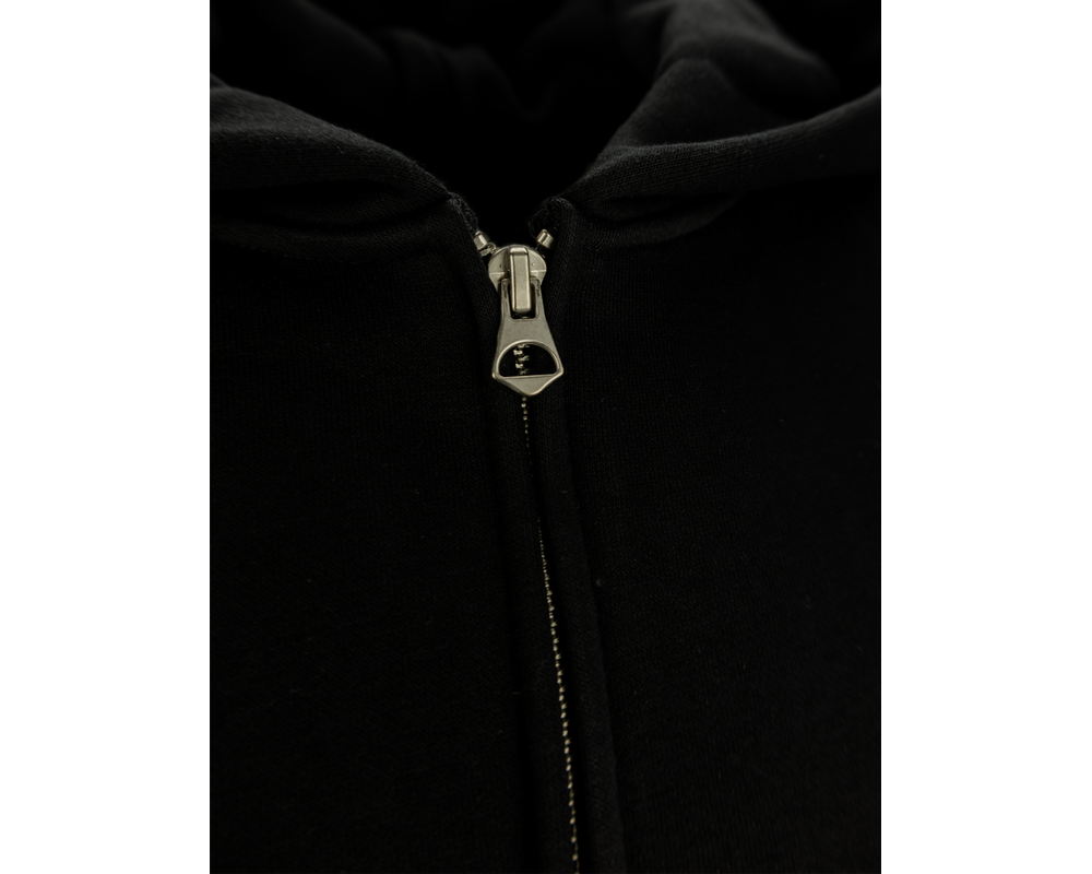 Sort hættetrøje med lynlås, udstyret med FCM-tryk på brystet og logo på ryggen. Denne hættetrøje kombinerer klubstolthed med komfort og stil, ideel til både afslapning og hverdagsbrug.