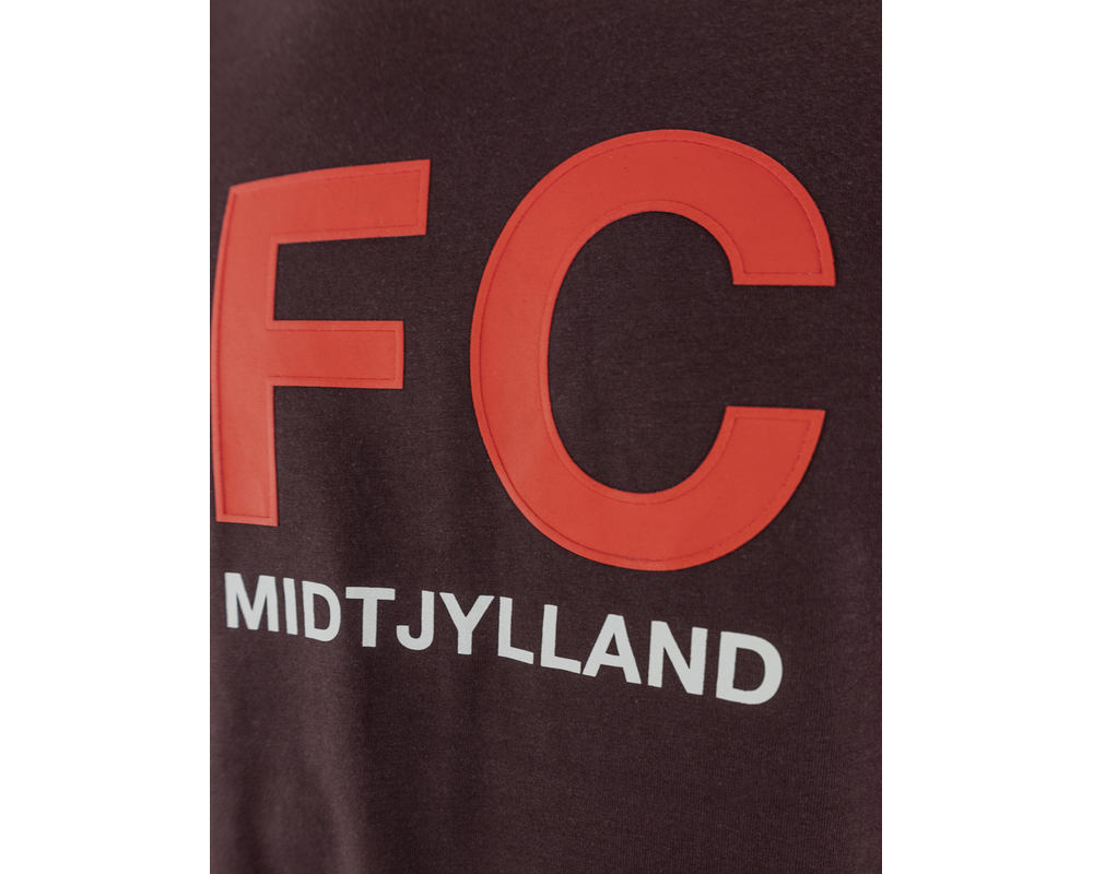 FCM bordeauxrød t-shirt, der kombinerer enkelhed og klubånd. Med et markant FC Midtjylland-print på forsiden og et diskret ulvelogo ved halskanten på ryggen, er denne t-shirt det perfekte valg til både kampdage og hverdagsbrug.