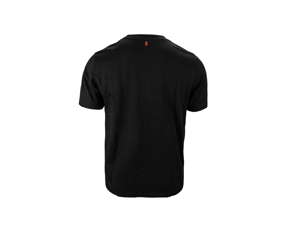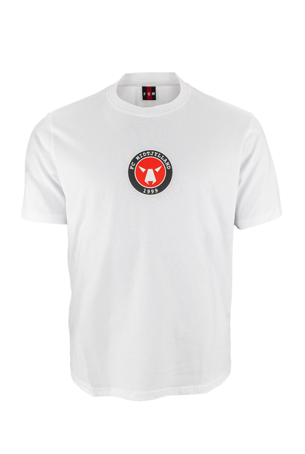 Sort t-shirt med FCM-logo foran, der giver et stilfuldt og diskret udtryk. Perfekt til at vise din støtte til FC Midtjylland. Denne tshirt tilbyder både komfort og moderne design til enhver lejlighed.