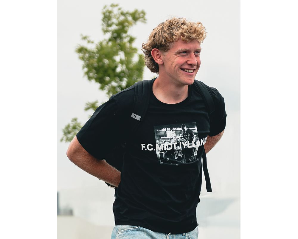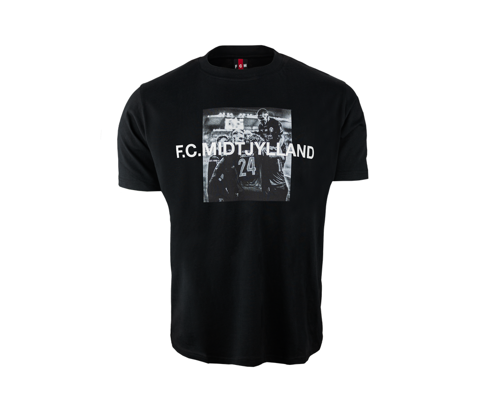 FC Midtjylland t-shirt er designet med et billede centreret på brystet af jublende FC Midtjylland spillere, med teksten F.C. Midtjylland henover, som tilsammen skaber en lækker t-shirt. Nakkedetalje med FC Midtjylland officielle sorte og røde farve.