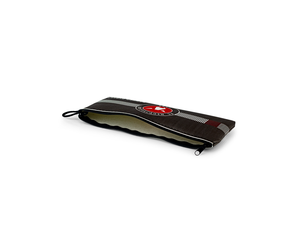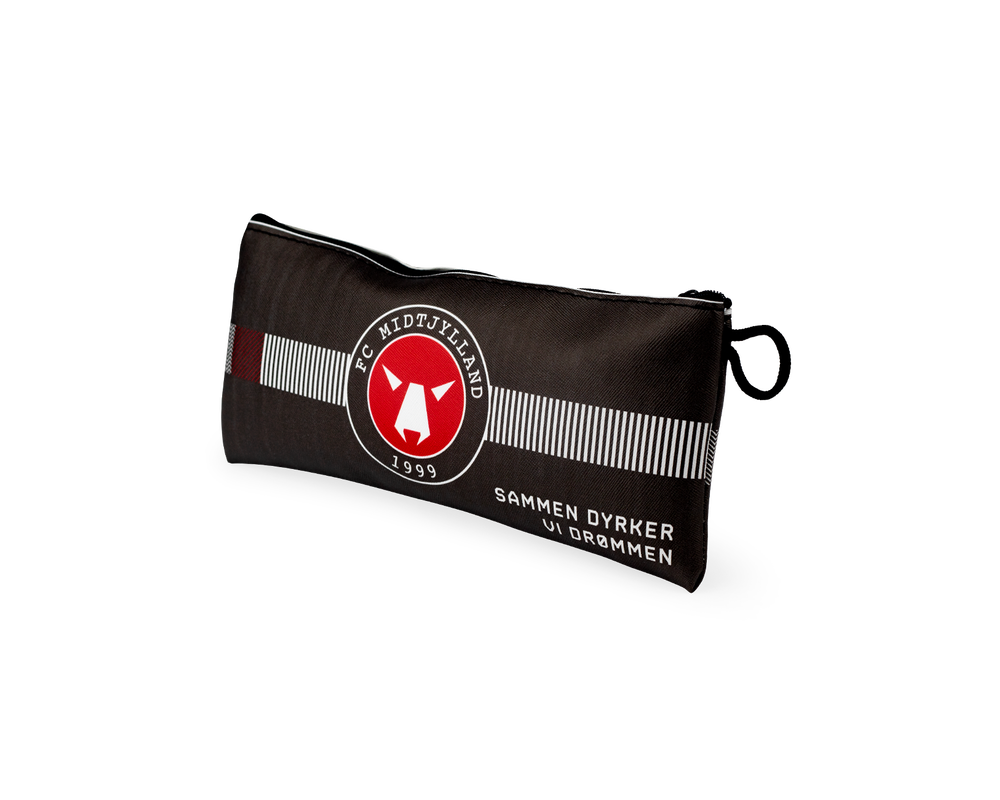 Her er et ægte FC Midtjylland penalhus til opbevaring af blyanter, hviskelæder, lineal osv. til den koncentrerede ulveunge.