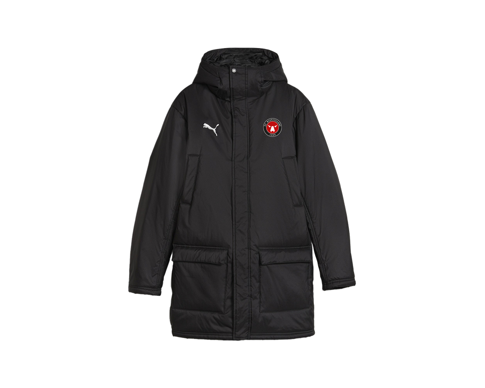 FC Midtjylland Final PUMA vinterjakke er skabt til et højt niveau af bevægelighed. Jakken er konstrueret med let og åndbart stof, som kombineret med FINAL's tætsiddende snit, resulterer i maksimal komfort.