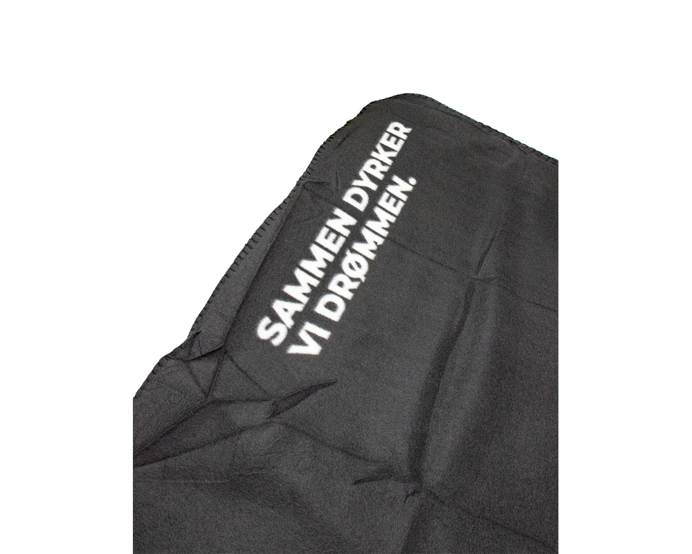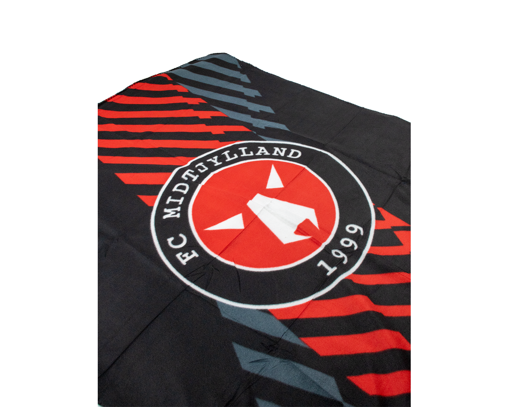 Lækkert Fleecetæppe med stort FC Midtjylland logo.
