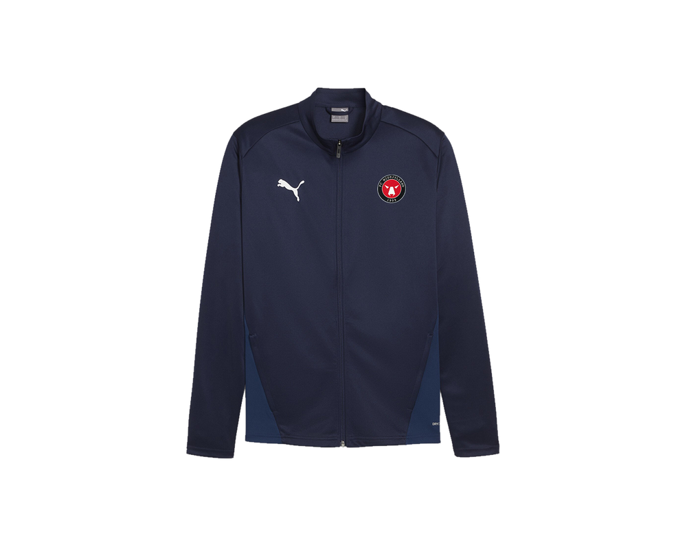 Denne FCM trænings cardigan er designet i et stilrent look med en klassisk navy farve og FCM logo på brystet. Puma Goal træningstrøjen er fremstillet med stor fokus på komfort og ydeevne under træning, som betyder at du kan træne som en ægte FC Midtjylland spiller med høj intensitet og bevægelighed på træningsbanen. En perfekt tilføjelse til dit udvalg af træningstøj.