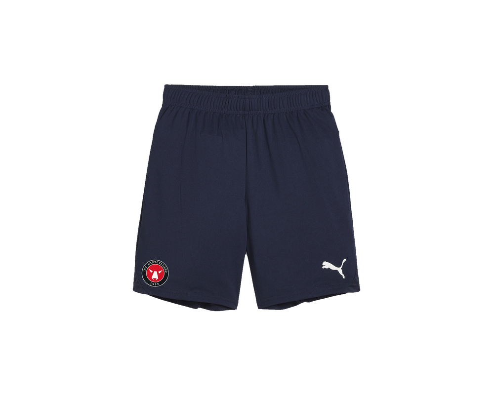 FCM Puma Goal shorts kombinerer de bedste materialer med en stilrent design, hvilket giver et par træningsshorts der sikrer at dit barn får et par short med ultimativ komfort og fleksibilitet. Disse shorts er designet i en klassisk navy farve, samt med elastisk linning med indvendig snøre for behagelig pasform, samt FCM og Puma logo på hver side.