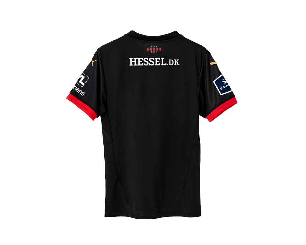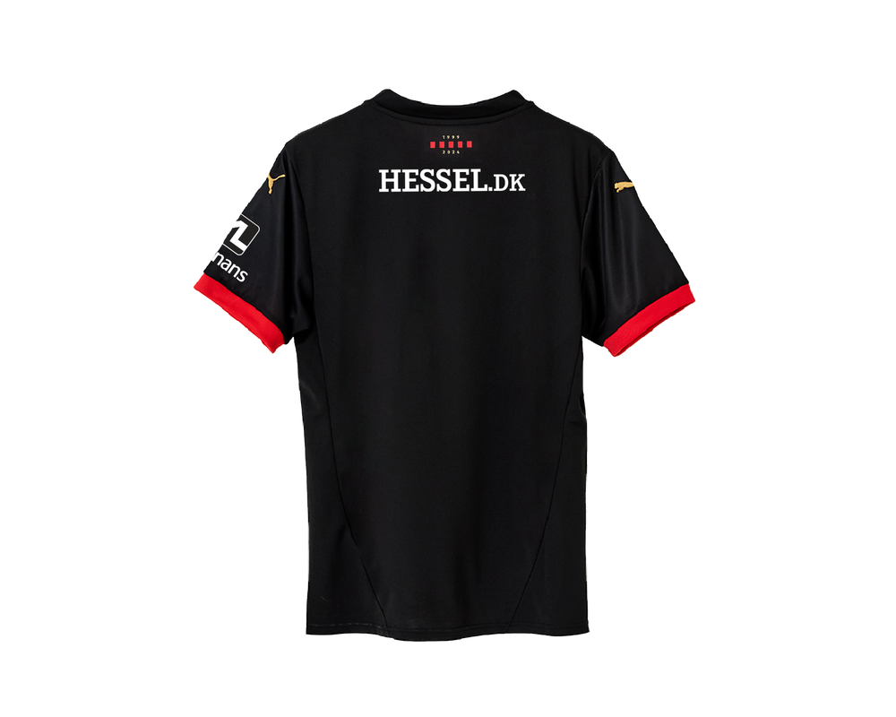 Hjemmebanetrøjen 24/25 kommer i et stilrent design med de klassiske FC Midtjylland farver og har stærke forbindelser til den første spillertrøje fra 1999. Den er således en Jubilæumstrøje med hyldest til rødderne fra FC Midtjyllands opstart, og en perfekt måde at fejre klubbens 25 års jubilæum.