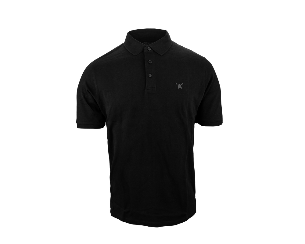 Helt sort polo med et diskret sort ulvelogo på brystet. Denne minimalistiske polo har ingen kravedetaljer og tilbyder et elegant, ensfarvet look. Perfekt til både afslappede og formelle lejligheder, kombinerer den enkelhed med stil og komfort.