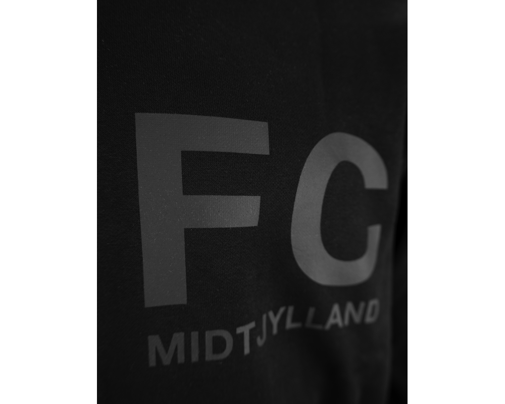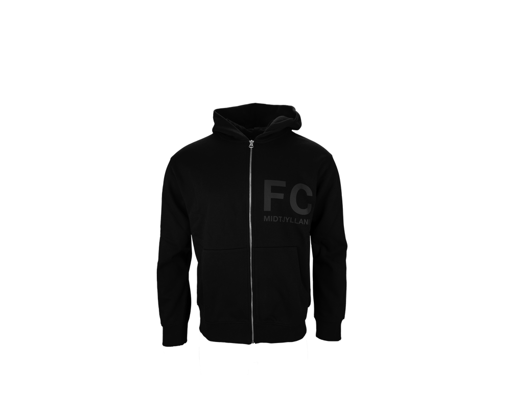 Sort hættetrøje med lynlås og praktiske lommer, der kombinerer komfort og klubånd. Med hvidt FC Midtjylland-tryk på brystet og hvidt FCM-logo på ryggen er denne trøje ideel til både hverdagsbrug og kampdage. Den bløde kvalitet og afslappede pasform sikrer, at du kan vise din støtte til klubben med stil og komfort