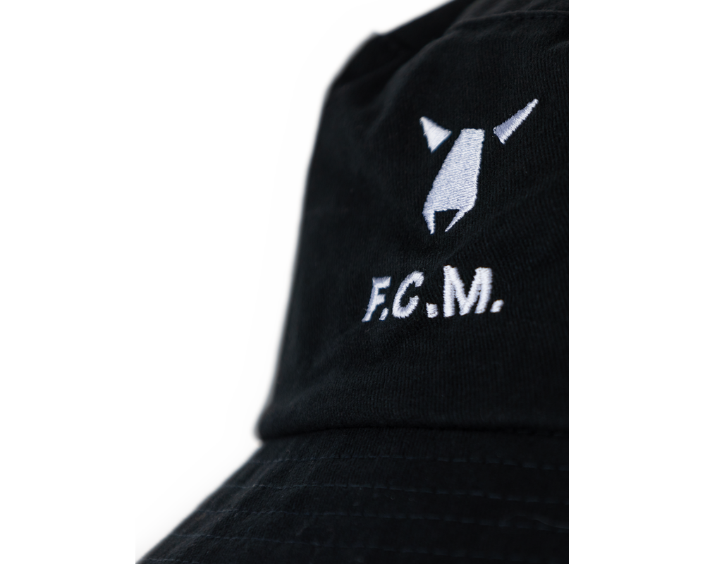 Elegant FC Midtjylland Bøllehat i sort, med det ikoniske ulvehoved og teksten F.C.M. under.