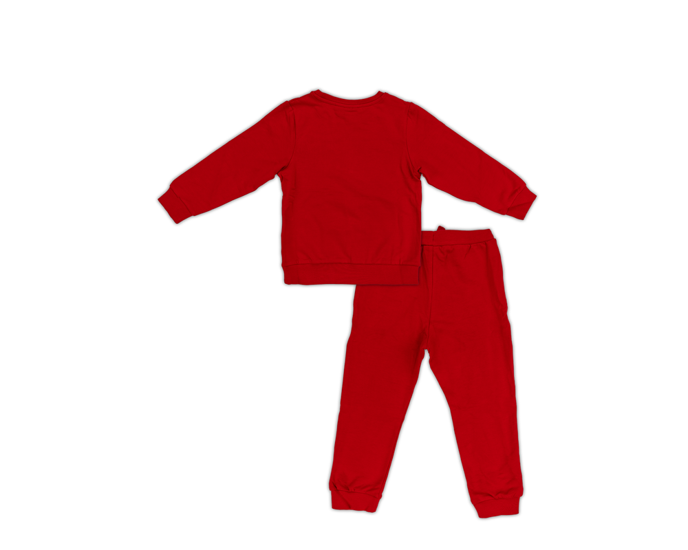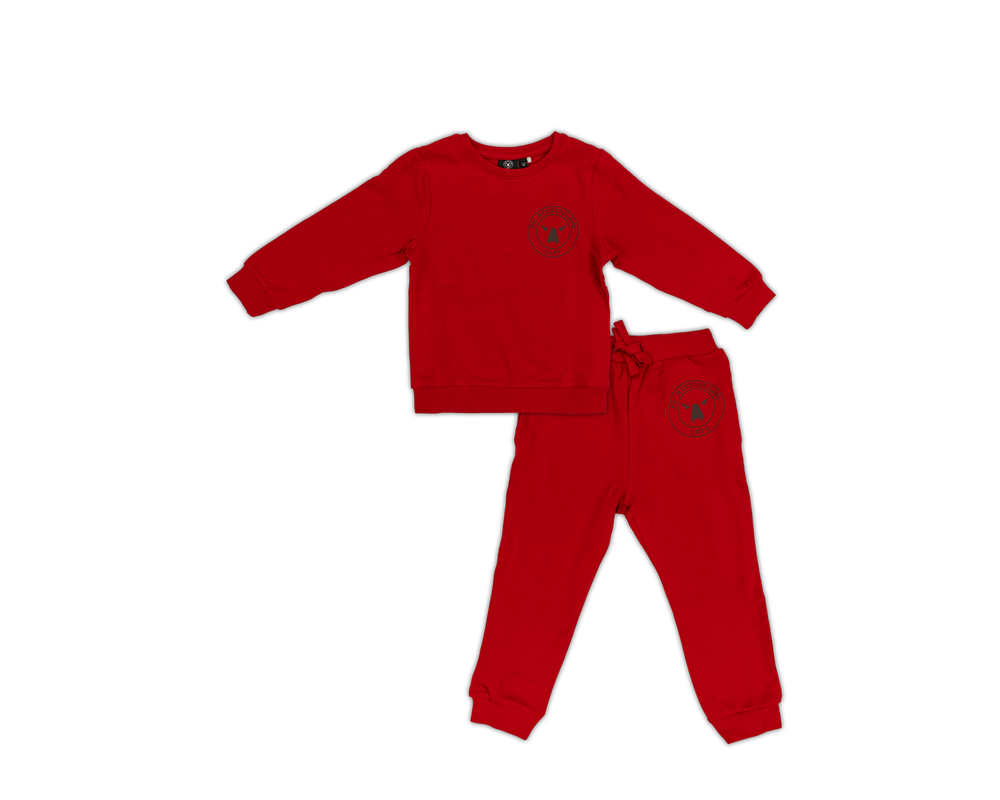 Giv de små fans en komfortabel og stilfuld måde at vise deres støtte på med dette røde FCM børnesæt. Sættet består af en langærmet overdel og matchende bukser, begge i blød sweatkvalitet, der sikrer optimal komfort til hverdagsbrug eller leg. På brystet af overdelen pryder det ikoniske FCM logo, så dit barn kan vise sin klubstolthed. Det alsidige og praktiske design gør sættet perfekt til både afslapning og aktive dage.
