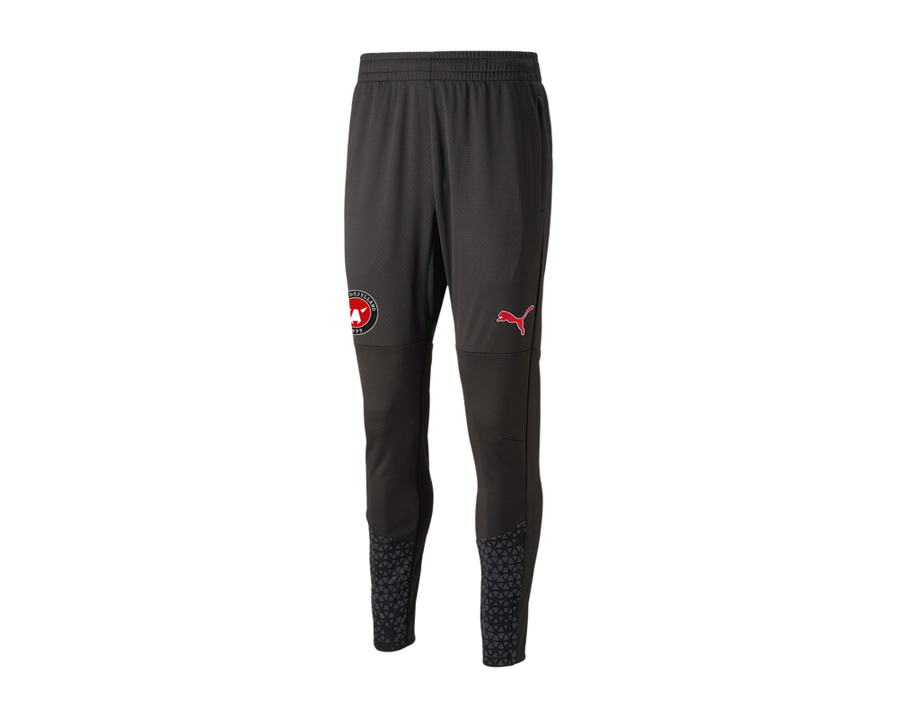 En behagelig træningsbuks med lommer i hver side, der lukkes med lynlås. Du kan derfor trygt opbevare dine personlige ejendele sikkert under bevægelse. Bukserne er lavet med lynlås ved begge bukseben, for at gøre det nemt at skifte fra bukser til shorts inden kamp, uden at skulle tage skoene af. Dette er bl.a. en af årsagerne til, at disse bukser er FCM spillernes foretrukne, når der skal varmes op til kamp i Superligaen.