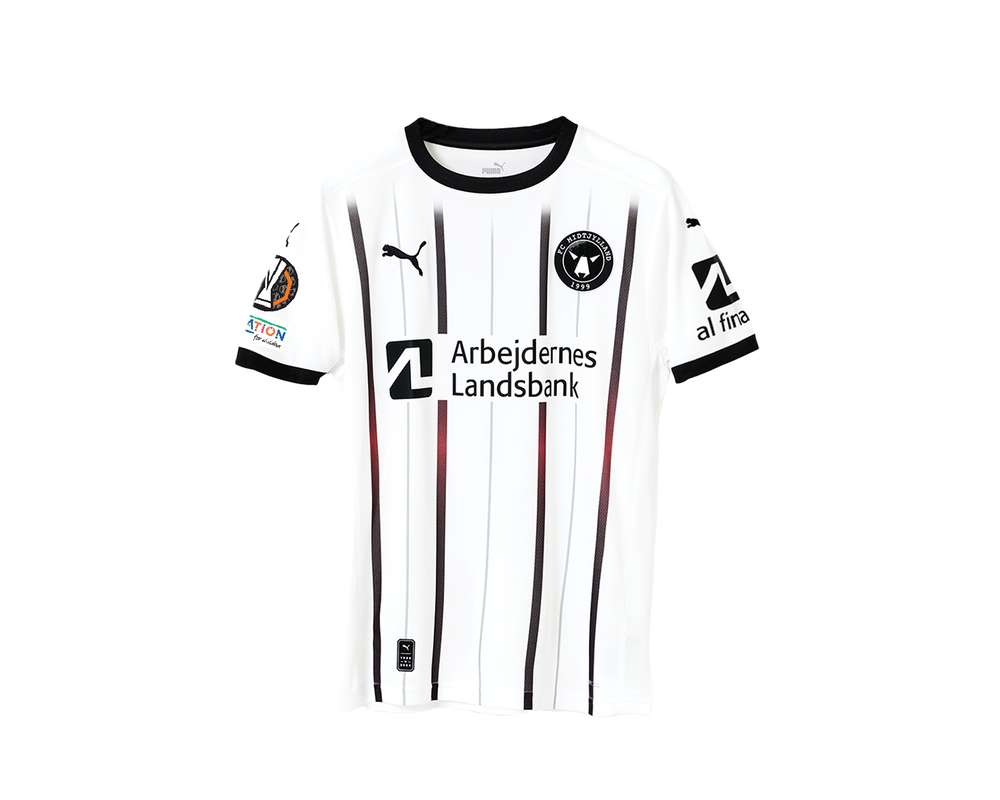 Denne UEL tredjetrøje er speciallavet med sublimerede sort-røde striber, som i samspil med den hvide trøje og de sorte logo detaljer resulterer i en stilren spillertrøje. UEL trøjen vil pryde adskillige europæiske udebaner, når FC Midtjylland er på jagt efter 3 point på fremmed græs i 24/25 sæsonen.